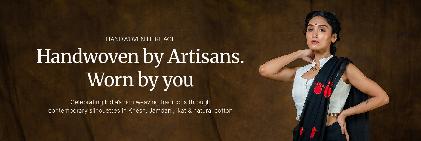 Prathaa - Weaving Traditions embodies a sharp edginess in its designs, offering a modern interpretation of age-old fabrics, making them both wearable and stylish simultaneously.